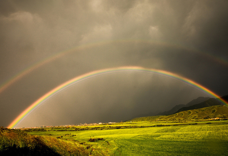 七彩祥云雨后描,一彎如練遠(yuǎn)塵囂