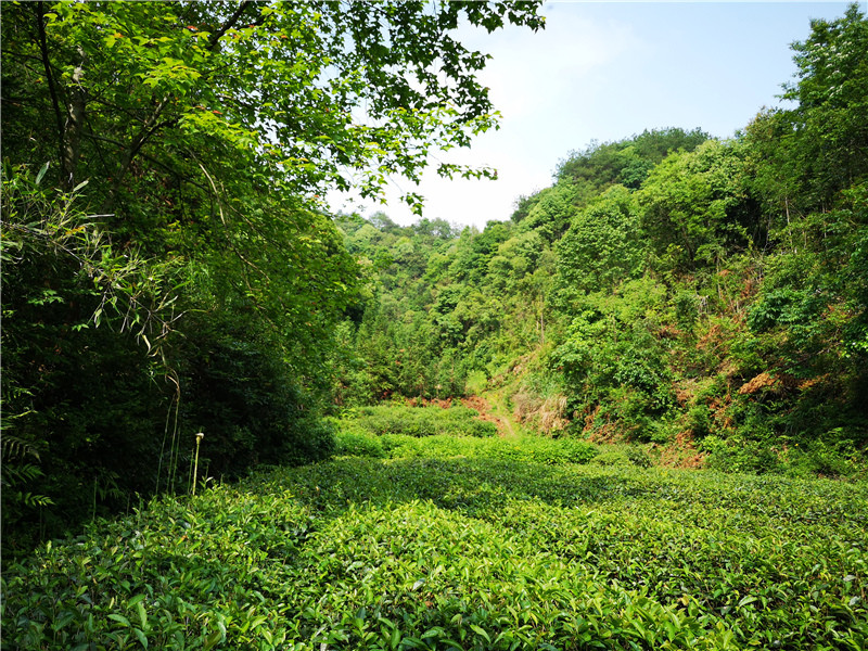 茶葉樹低矮的肩膀,扛著一襲清香;在蜂飛蝶舞里眺望。纖纖嫩葉,循著山歌,宛若啼春的雀舌,婉囀于翡翠般青蔥的茶園