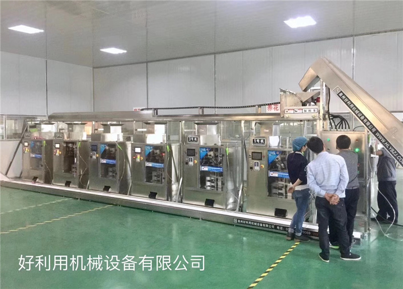 泉州好利用包裝機械設(shè)備公司,生產(chǎn)的一體化集成自動加料、計量稱重、取袋、撐袋、下料、充氮氣、封口、成品統(tǒng)一傳送、是目前國內(nèi)茶葉給袋式包裝自動化程度最高的一條名優(yōu)茶精包裝成產(chǎn)線。