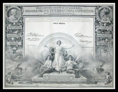 “巴拿馬賽會”的譯法也是五花八門的,有譯“巴拿馬萬國博覽會”的,有譯“巴拿馬國際食品博覽會”的。從一張當年的獲獎證書上可以看到,1915年那次博覽會的全稱應該是“巴拿馬太平洋國際博覽會”,也就是現在熟知的“世博會”是也。