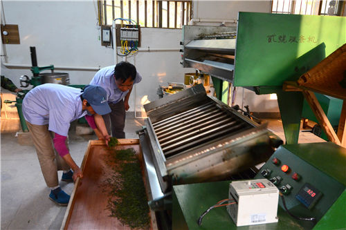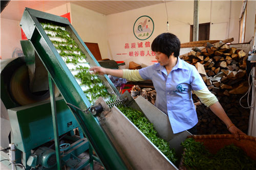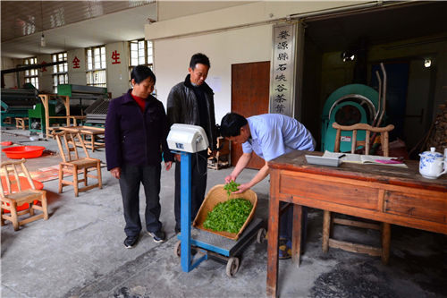 4月17日,婺源縣石峽谷茶業專業合作社茶農在思口鎮西源峽谷春茶廠內加工茶葉,茶農把茶園里采摘下來的新茶買進合作社。正值春茶采摘旺季,江西省婺源縣思口石峽谷茶業專業合作社以"公司+基地+農戶"發展經營模式受益茶農致富,合作社負責加工生產銷售,茶農提供茶園基地和茶葉采摘,這種雙贏模式成為當今茶農發展的新模式。據了解,江西省婺源縣石峽谷茶業專業合作社成立5年來,吸引了思口鎮西源村、村民加入到合作社中來。目前,合作社擁有社員800多人,有機茶園400多畝,促進茶農增收致富。(王國紅、程新德 攝)